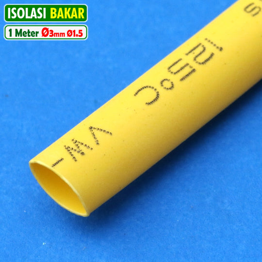 Isolasi Bakar 3mm 1 Meter Susut Panas Pelindung Kabel Kuning Tebal