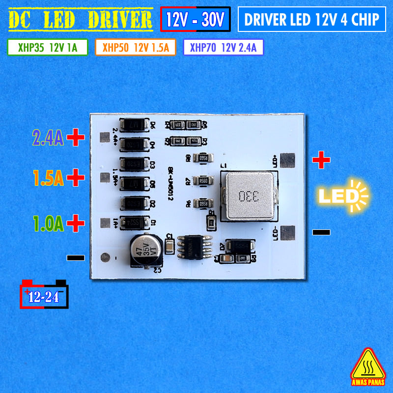 Driver Led 12V MCP 4 Chip 2.4A 1.5A 1A XHP35 12W XHP50 20W XHP70 30W Pajero Dakar Mata Led 4C 5C Head Fog Lamp Projector DC AKI 12V 24V