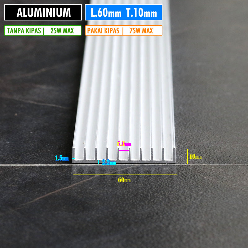 Bahan Murni Aluminium, Panjang 60cm, Lebar 6cm Dan Tinggi 1cm