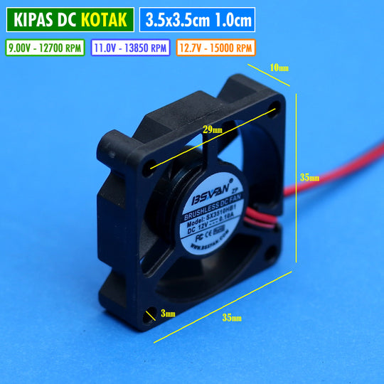 Kipas Biled Projie 3.5cm x 3.5cm Kipas DC Kotak 35mm x 35mm Kipas High Speed Brusless Ball Bearing DIY Pendingin Led Lampu Sorot Tembak Proji Projector DRL Tahan Hujan