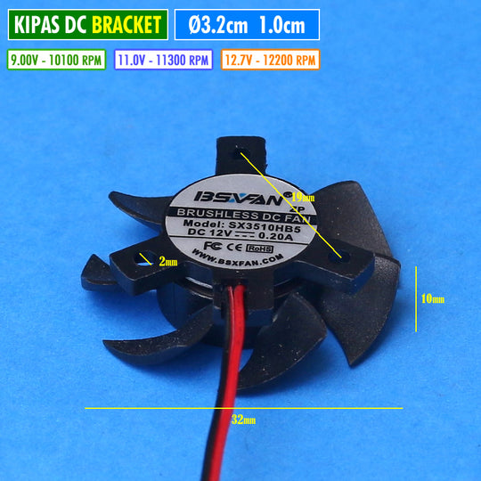 Kipas ini Kode 3510 Bracket Fan Diameter 3.2cm Brusless Ball Bearing Tebal 1cm