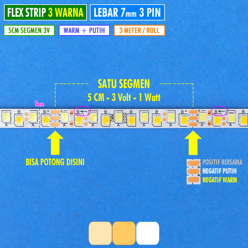 Led Strip 3 Warna Lebar 7mm 3 Pin Spare Part Mata Lampu Gantung Hias Ring Light Tempel Plafon Flexible Flex Strip Warm 3500K Putih 6500K Segmen 3V 5cm 10X Led