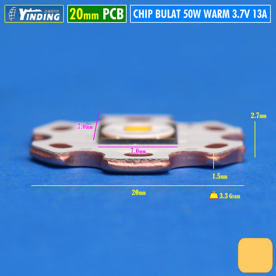 Yinding 50W 13A 3.7V Cahaya Warm 20mm PCB