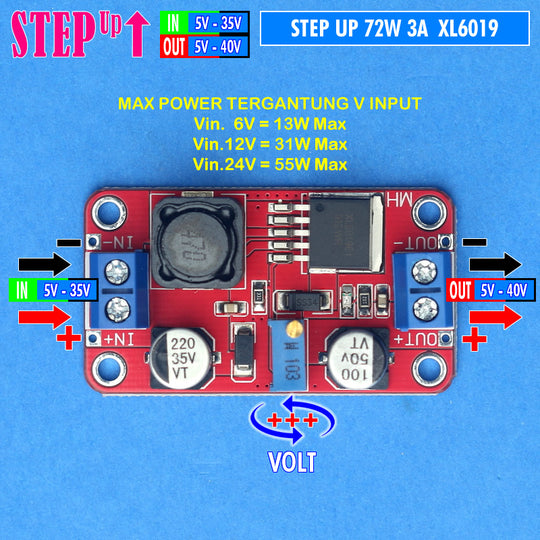 - Kualitas: Standart, 1x XL6019 3A 72W 5A Max