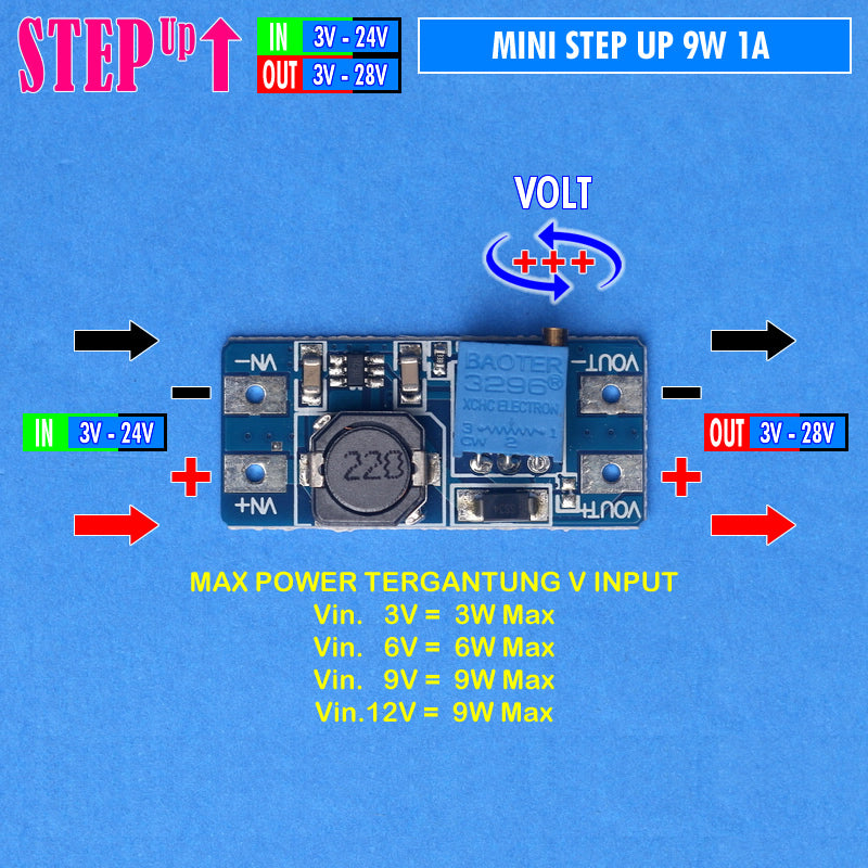 - Kualitas: Standart, 1x MT3608 1A 12W Max